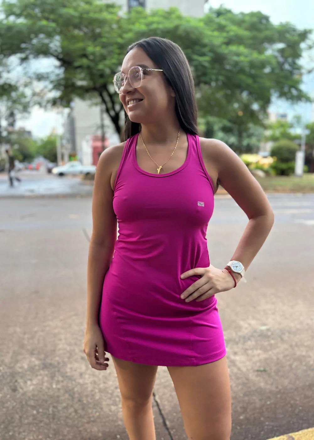 / Vestido con UV rosa